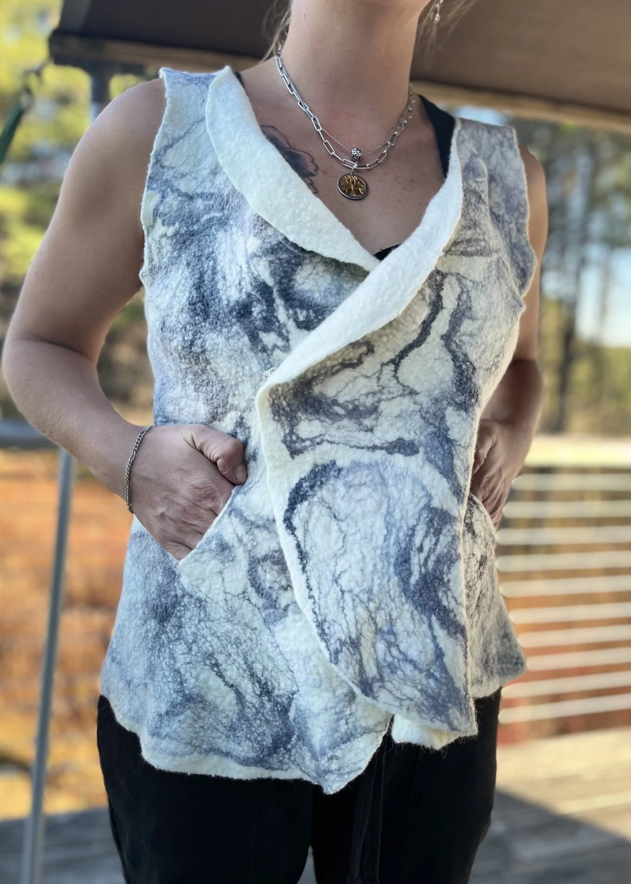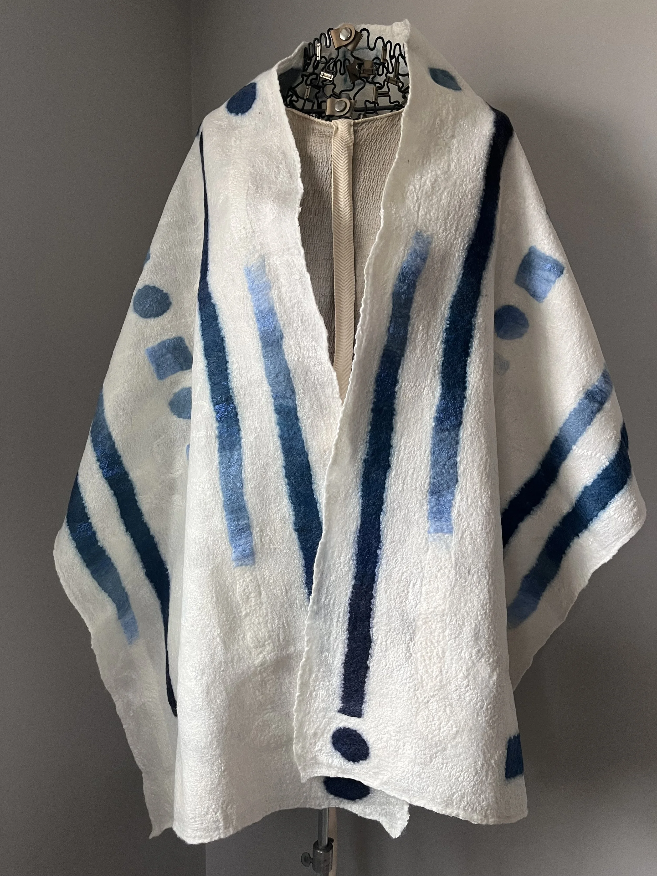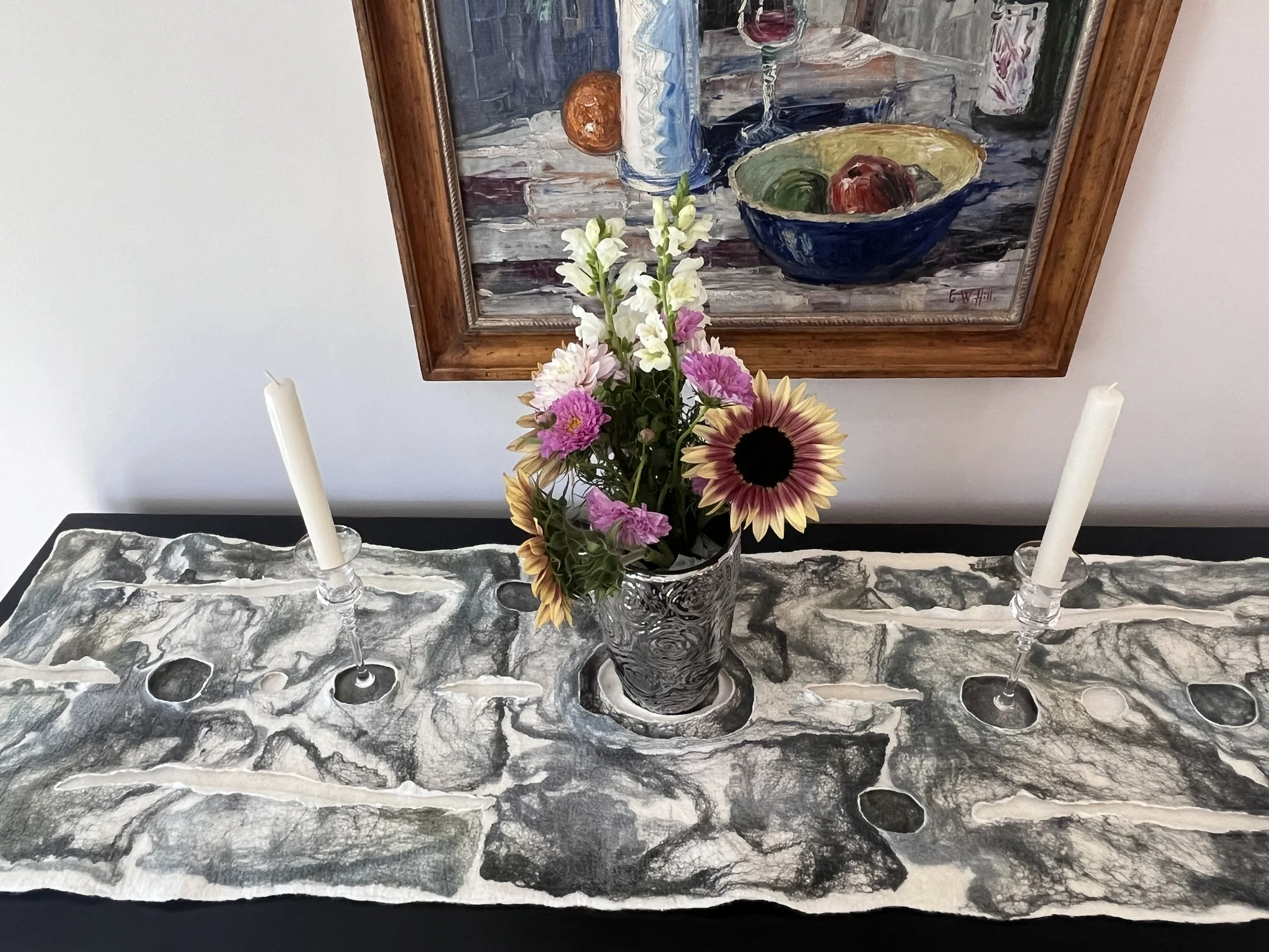 Located in Warren, Maine, my studio is full of soft merino wool, silk and other lightweight garment materials to make one-of-a-kind wearable art and home embellishment pieces. Hand crafting OOAK scarves and wraps, wall hangings, lighting, and table embellishments, I continue to learn new techniques to make use of in my work. I’m very excited to be able to share my felted pieces with you.